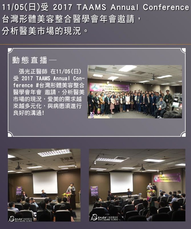 2017/11/05 受2017 TAAMS Annual Conference 台灣形體美容整合醫學會年會 邀請,分析醫美市場的現況