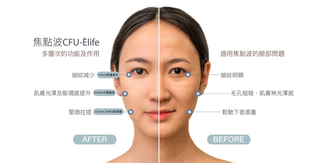無論是臉部的提拉與細紋改善,還是身體的脂肪減少與曲線塑形,CFU-Èlife 都能以客製化的方式精準實現目標。